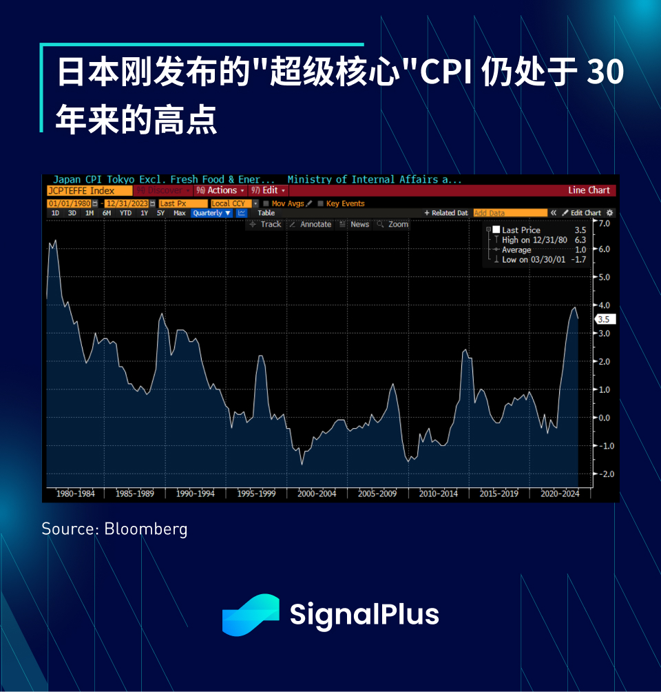 有趣的是,正当美联储让市场为即将到来的打击通胀胜利做好准备时,投资者因担忧今年稍晚价格压力会重新浮现而继续买入抗通胀债券;此外,对供应链中断压力(例如最近的红海袭击)的预期也暗示著未来通胀的隐忧,近期的德国通胀数据和今天日本发布的“超级核心”CPI 数据也都在提醒我们,在通胀预期方面我们可能走向了另一个极端。