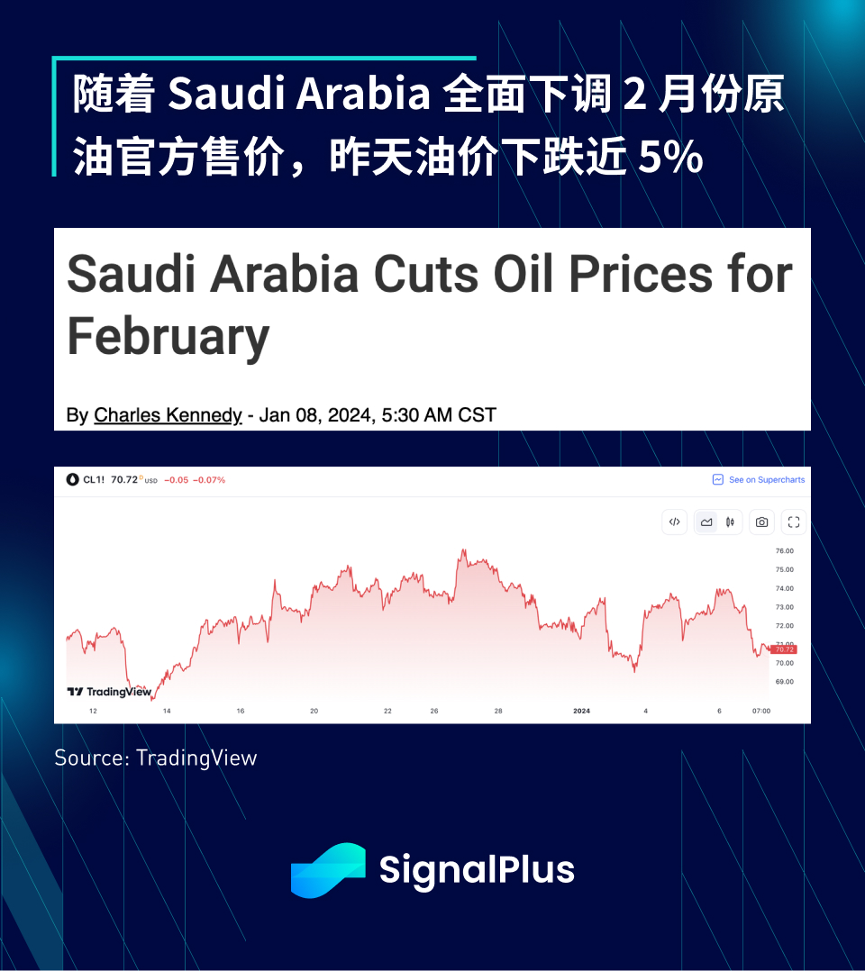 在通胀方面,Saudia Arabia 再次大幅下调原油定价(这次是针对北美和亚洲买家),导致油价下跌 4.5% ,天然气价格也下跌近 8% ,交易商增持了 5 年来最大的原油空头仓位;此外,纽约联储的消费者预期调查显示,短期通胀预期已降至 3 年来的最低水平,其中 1 年期通胀预期从 3.36% 降至 3.01% , 3 年期通胀预期从 3% 降至 2.6% ;最后,亚特兰大联储的 Bostic 提到,通胀下降幅度超出预期,美联储继续为短期内降息铺平道路。