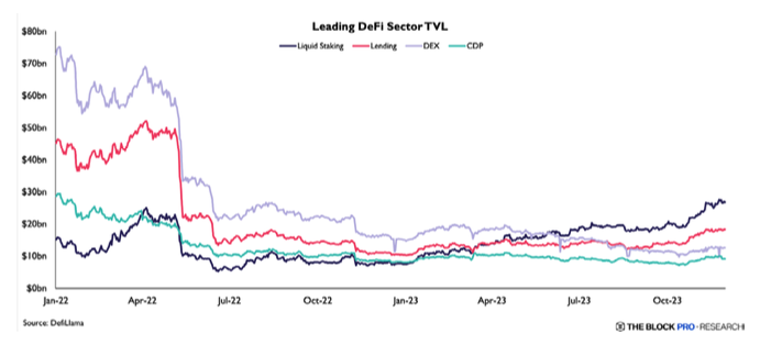 2023 年对于 DeFi 来说是以巩固和韧性为特征的一年,包括 DEX、借货市场和流动性质押等在内的 DeFi 板块都是如此。