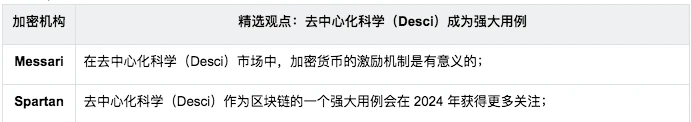 总体论调:去中心化科学(Desci)作为区块链的一个强大用例会在 2024 年获得更多关注,在这个市场中,加密货币的激励机制是有意义的。