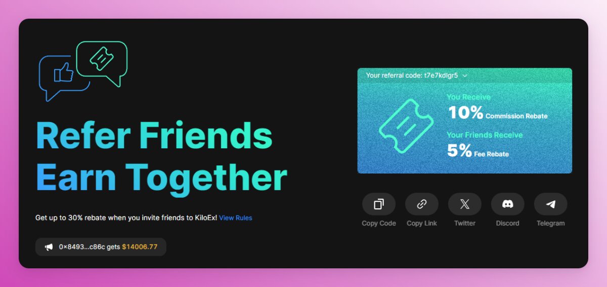 访问网站并了解如何获得更多积分: https://app.kiloex.io/airdrop