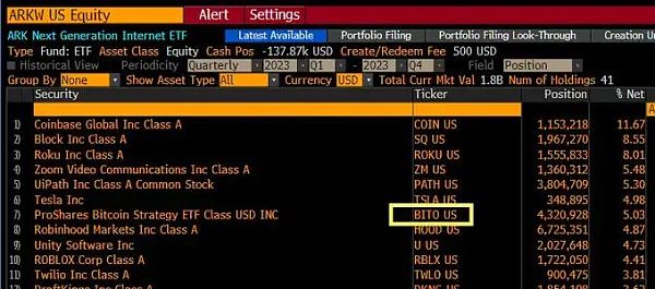 ARK 方舟购买的 ProShares 比特币策略 ETF(BITO)的股票