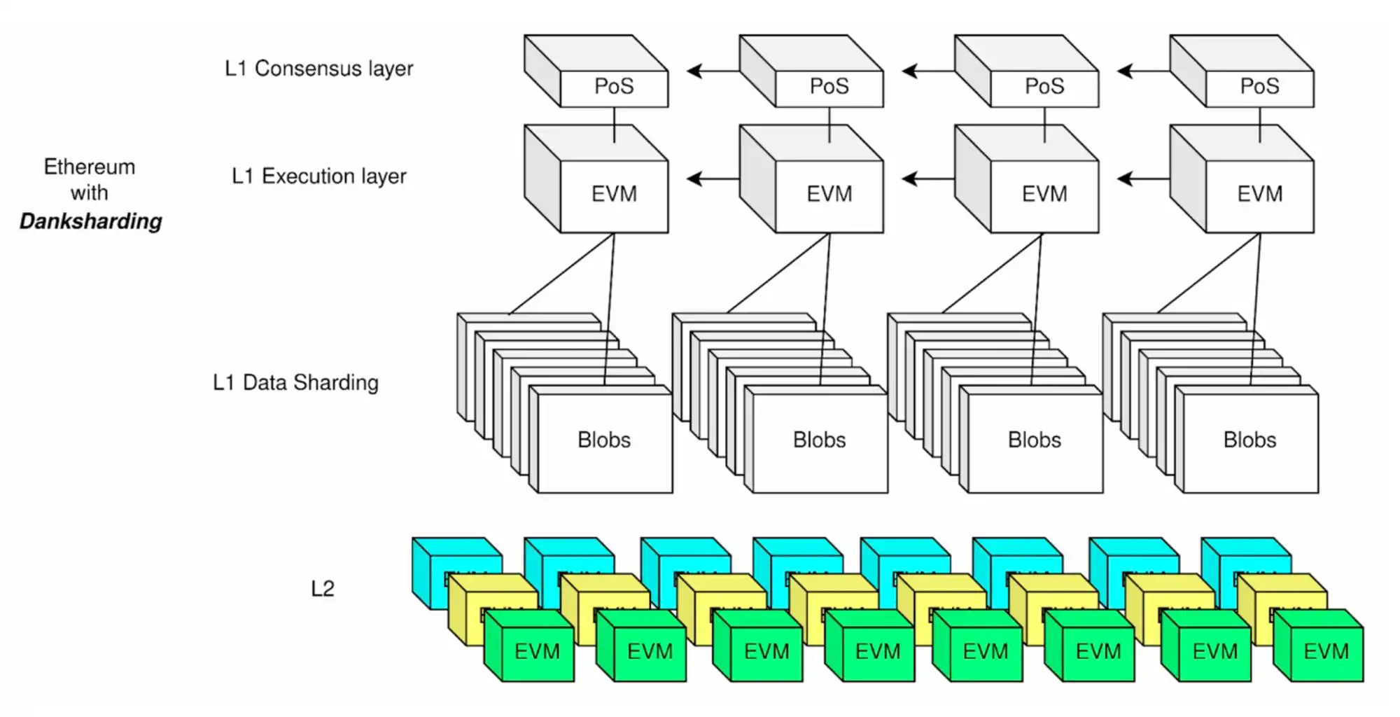 Proto-Danksharing 将会在以太坊区块中引入一种新的数据存储结构:blob。blob 将专门用于存储 L2 向 L1 提交的交易数据。