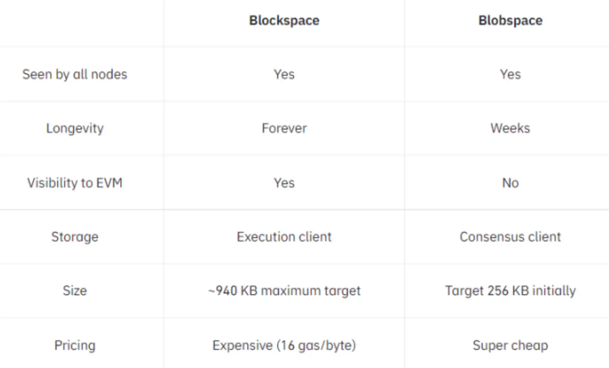 相比之下,目前以太坊每个区块可以容纳的数据大小不到 200KB,引入 blob 后,以太坊区块可容纳的数据量将显著提高。