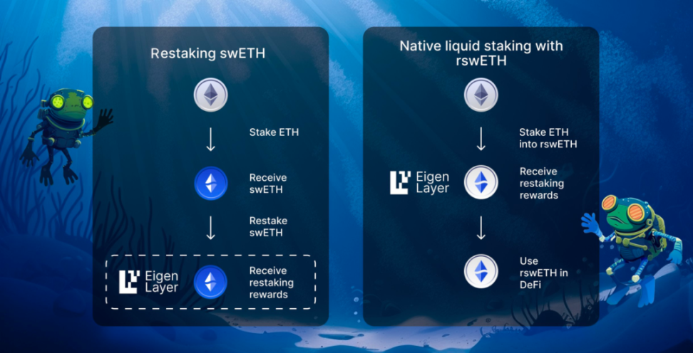 目前仅开放 LSD 产品的部分开放质押,存入 ETH 获得 swETH 代币,而 Liquid Native Restaking 产品质押 ETH 获得 rswETH 尚未开放。