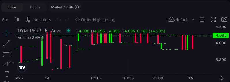 Odaily 星球日报注:Aevo 上的 pre-lanuch 合约波动较大,交易量较小,具有一定的参考意义,但不能完全代表 TGE 后的真实市场价格。