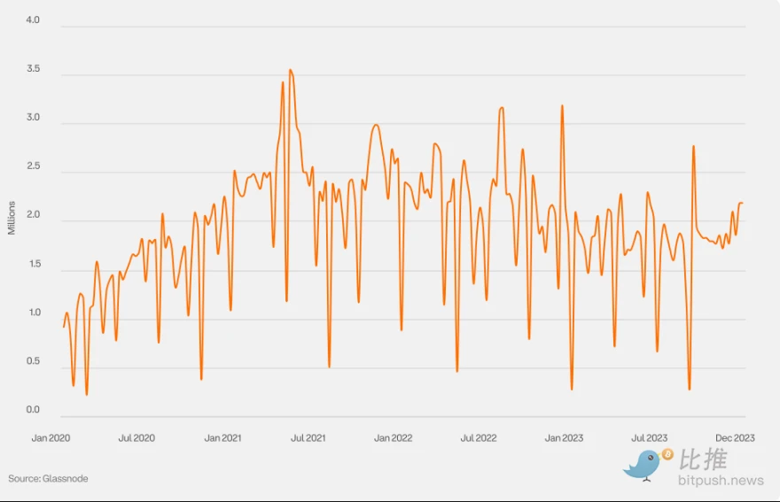 活跃地址数是指在网络中作为发送方或接收方参与活动的唯一地址数量。它是衡量用户采用率、网络健康状况、经济活动等的重要指标。