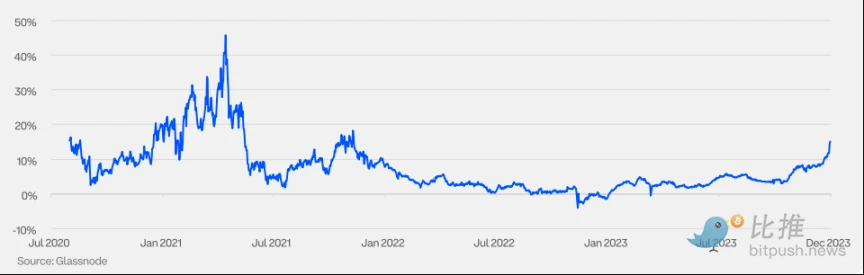 2023 年,比特币价格涨幅超过 155% 。市场参与者受到多方面因素的鼓舞,包括通胀步伐的放缓以及现货加密货币交易所交易基金(ETFs)获批可能性的增加。