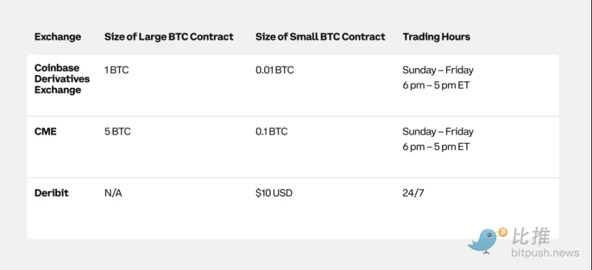 比特币期货由多家交易所提供,具有不同的规模和面额。