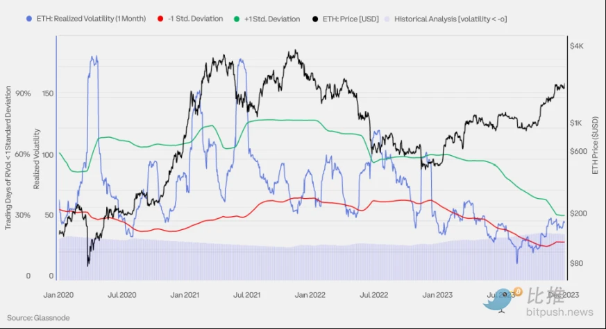 以太坊月度已实现波动率带