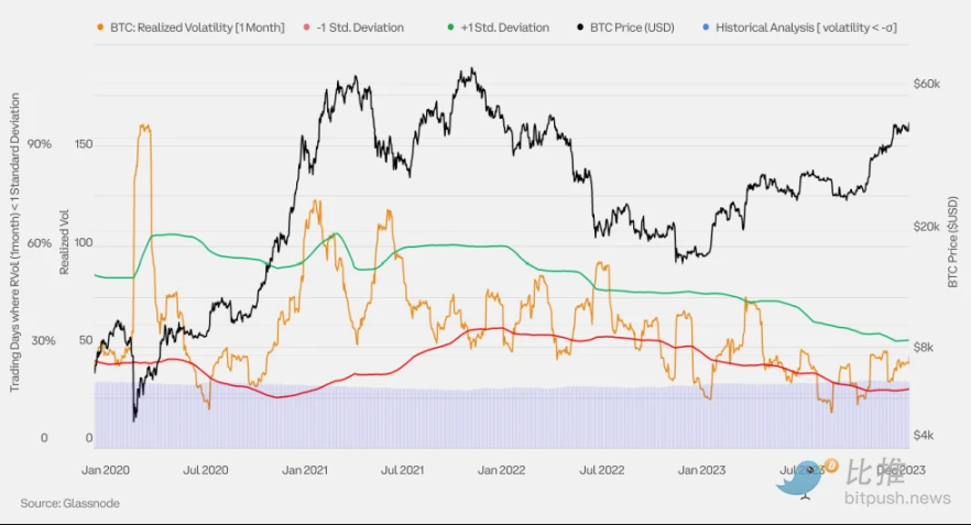 BTC 月度已实现波动率带