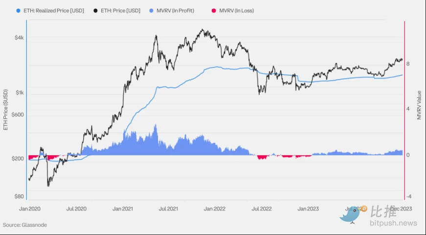 以太坊(ETH)已实现价格与 MVRV