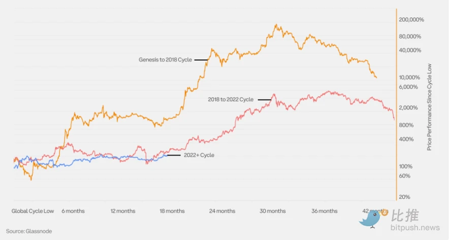 自周期低点以来的 BTC 价格表现