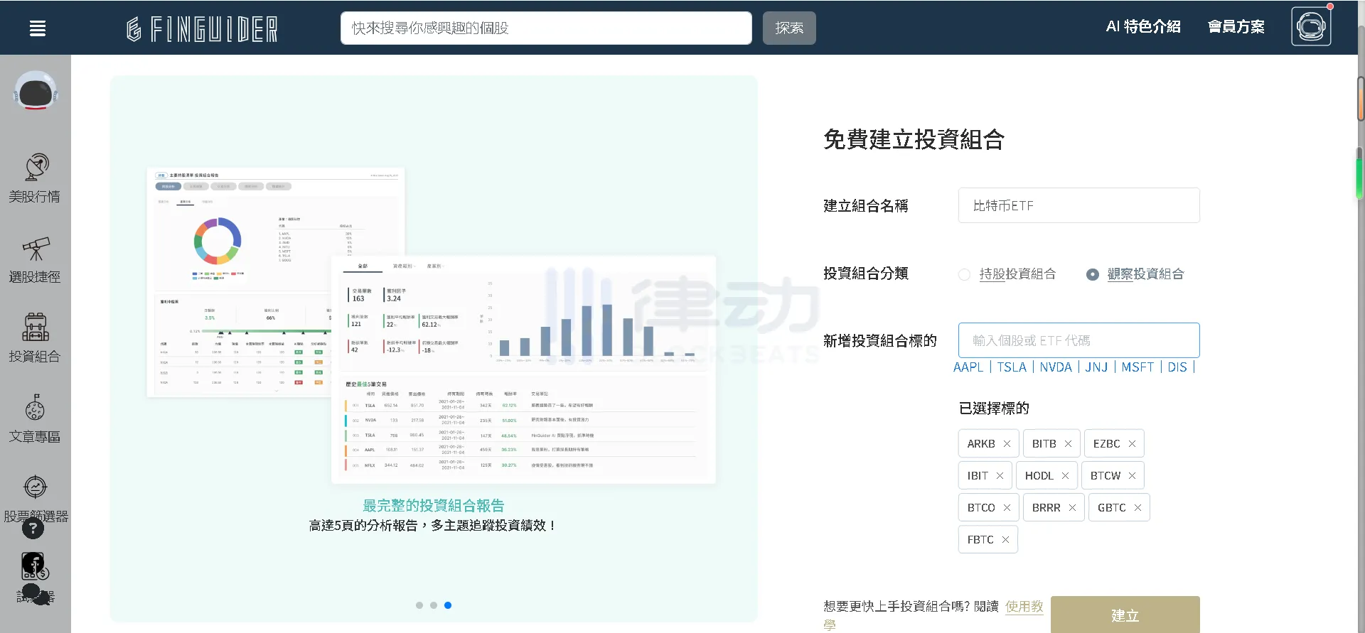 在 FinGuider 中,用邮箱注册账号后,可自选需要观察的 ETF 标的建立一个观察合集,网站会自动生成所选 ETF 的行情对比信息。