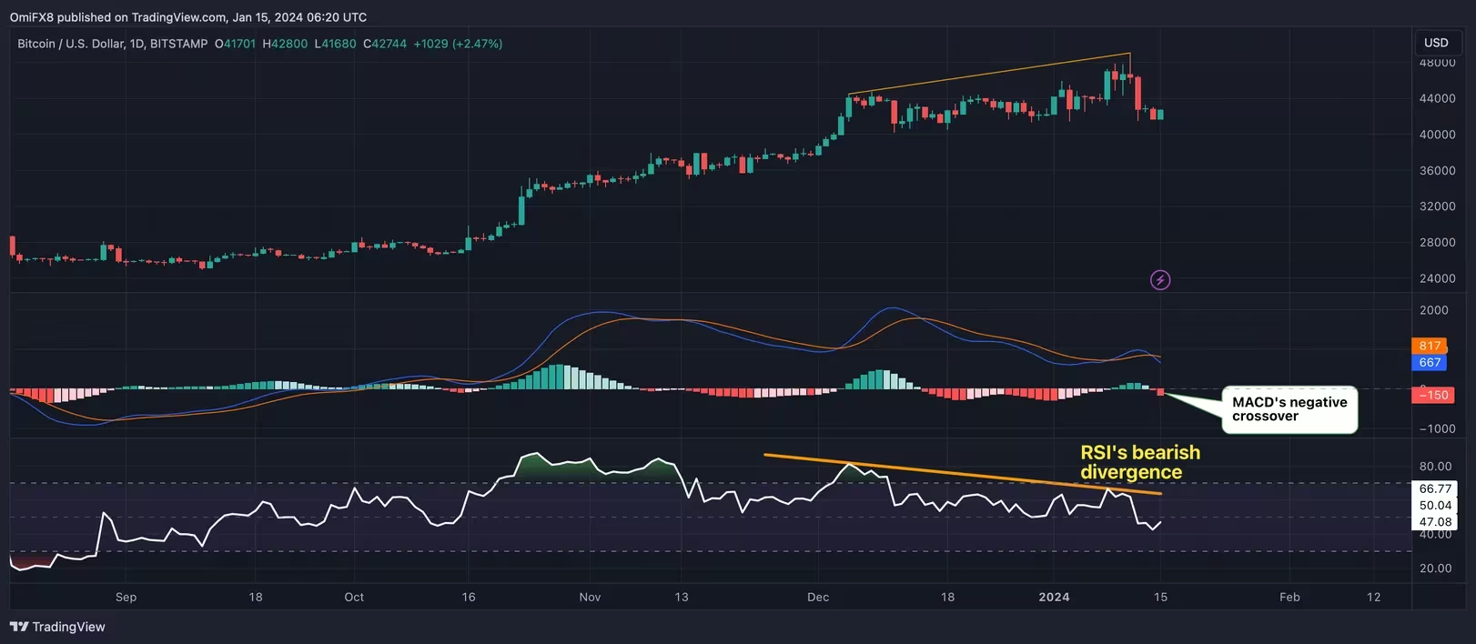背离信号是修正,回调可能在38,000美元的动态支撑位附近失去动力。