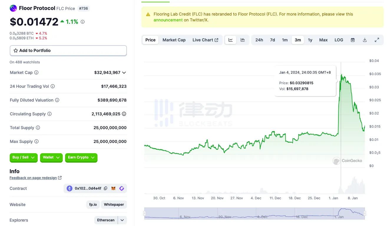 在 2023 年 12 月间,FLC 的价格在 0.0075 和 0.012 美元之间,而从 1 月 2 日至 1 月 4 日,两天时间,FLC 的价格从 0.012 美元激增至 0.035 美元。