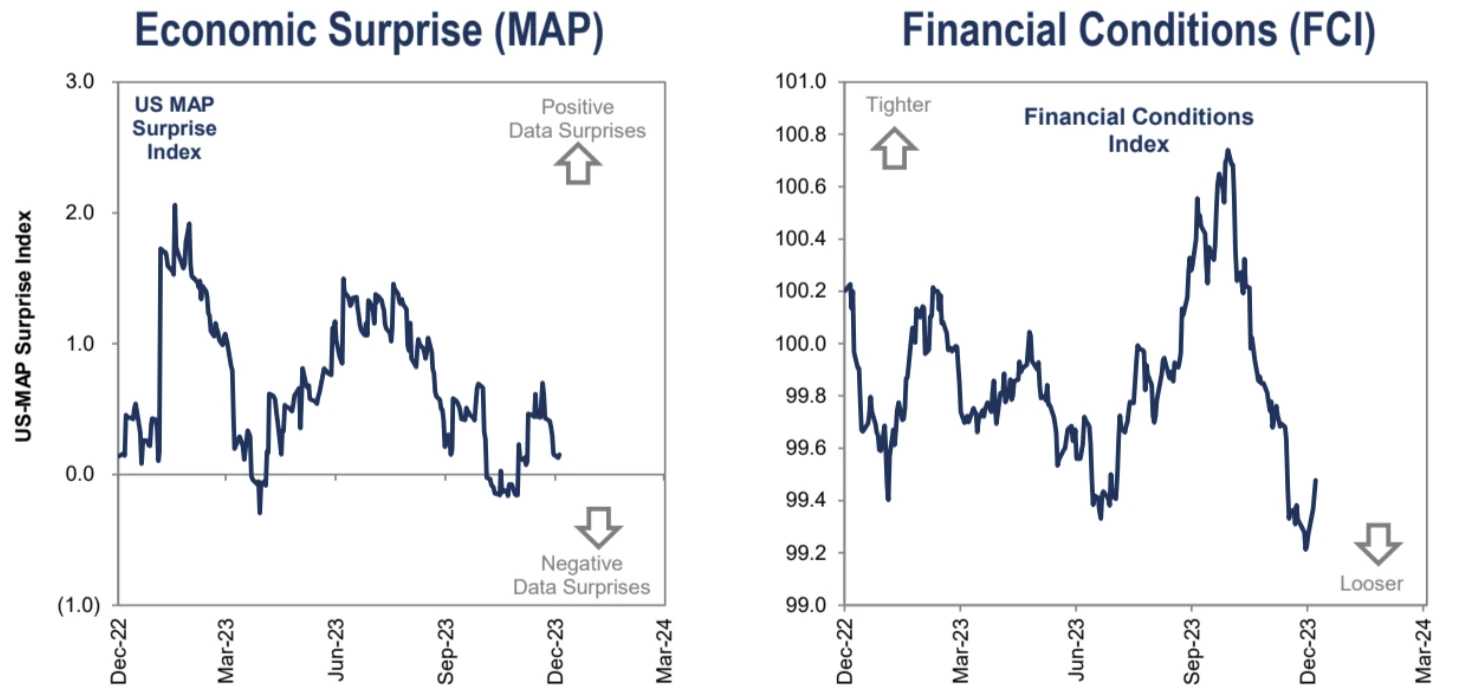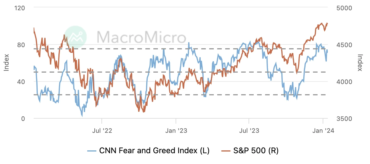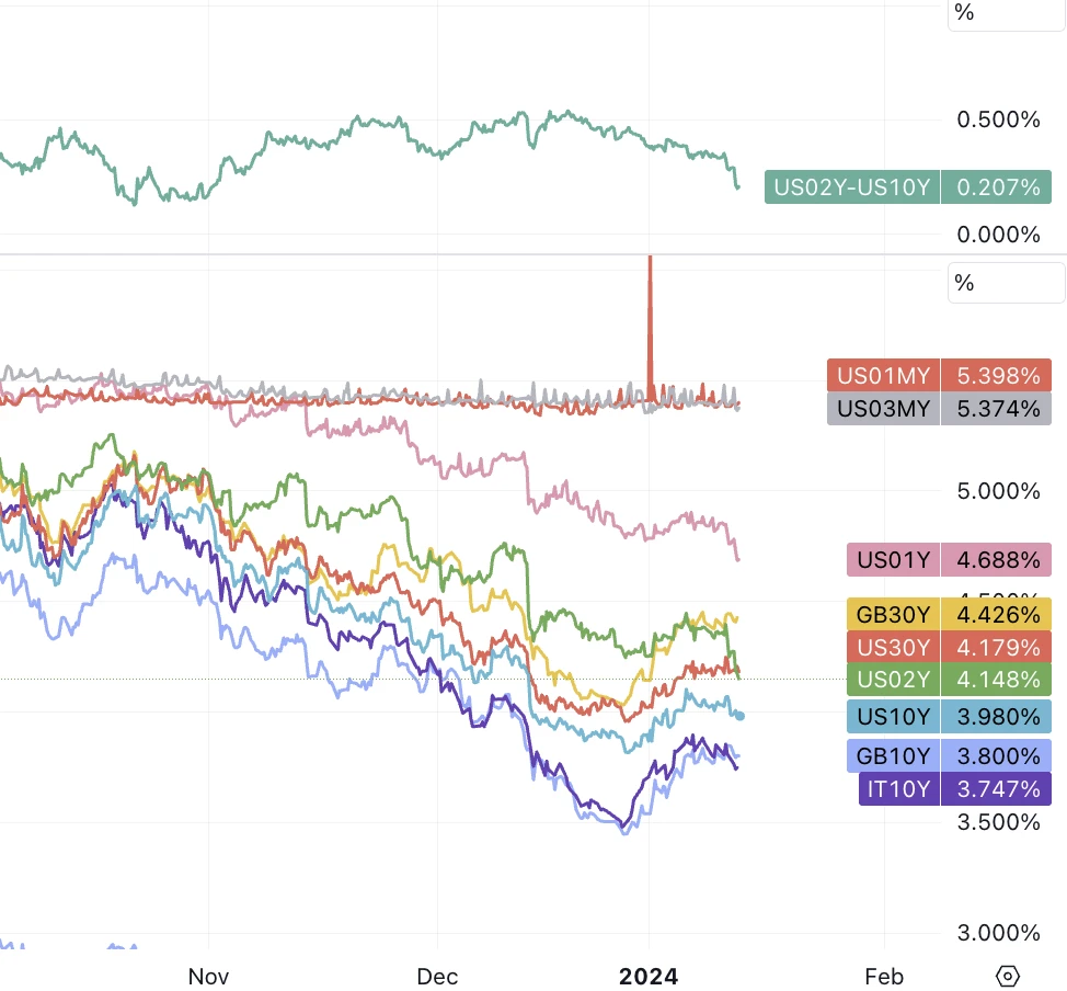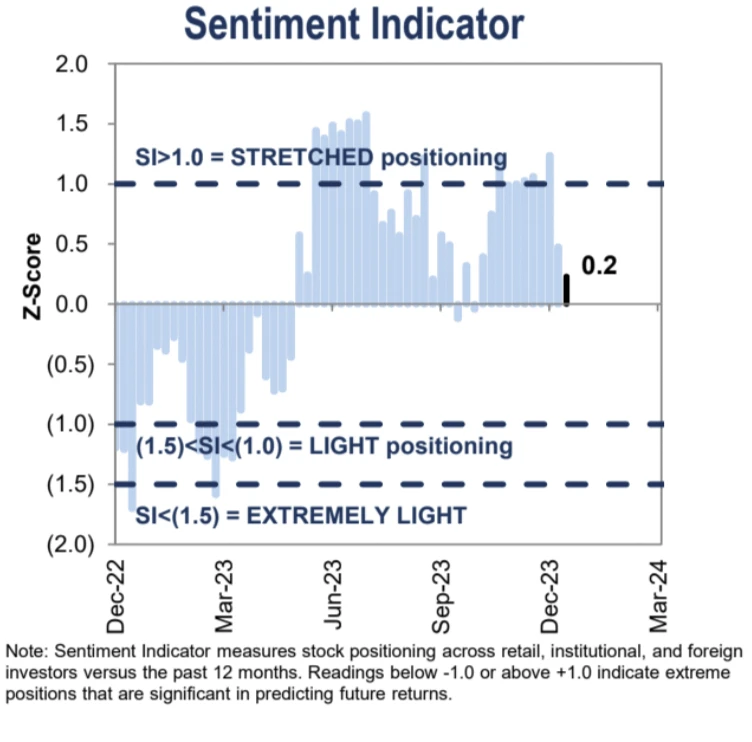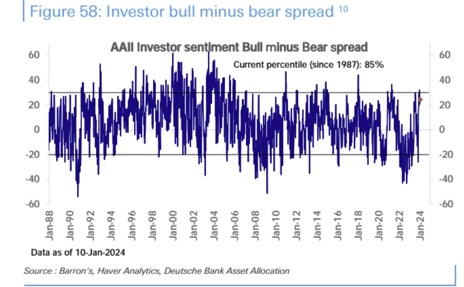 美股市场上周算是假期之后全面复工的第一周,市场转为乐观,标普涨 1.7% ,周五创下历史新高,纳斯达克涨 2.9% 。除了日本和印度外,亚太地区大部分股市下跌。强烈地震和乏善可陈的工资增长数据迫使市场参与者重新评估日银何时会将其货币政策正常化,日股大涨 6% 。欧洲 Stoxx 600 指数上涨约 0.8% ,如果能够维持,这将是自 12 月中旬以来的最大涨幅。宏观主题上降息概念已经过时,QT 缩减成为新的热点。因为再前一周我们观察到机构普遍看跌,尽管回调没有发生,但援引高盛交易台周末观点:我们认为有序的短期风险规避策略仍然有效。
