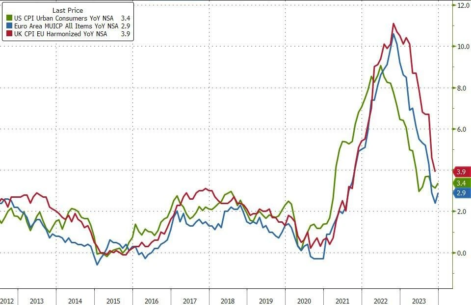 CPI 12 月+ 3.4% VS 11 月+ 3.1% ,上涨的大部分是由服务成本,特别是住房成本推动的;核心 CPI 继续放缓,从 4% 降至 3.9% 。市场普遍认为通胀正处于下降趋势,尽管实际情况似乎更加复杂,比如航运和能源不再成为通缩叙事的拖累因素。本次 CPI 小幅反弹提醒人们,走完“最后一英里”可能需要耐心,但在行情上来看依旧被市场当做鸽派因素。
