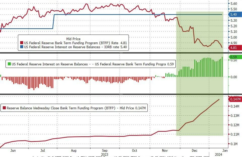 用于银行紧急救助的 BTFP 最近两个月使用量激增,但分析普遍认为这是因为套利导致的,并非银行流动性紧张。如美联储也承认这一事实, 3 月到期后应该不会再续作该政策。不过也为到时缩减 QT 提供了一个新的支撑,Fed 没理由冒让地区银行业危机卷土重来的风险。