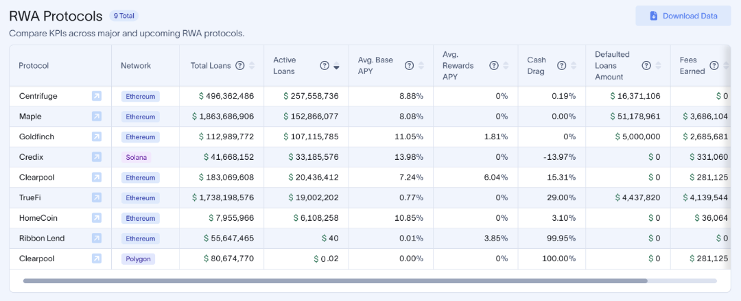 波卡生态中的Centrifuge也在RWA中的私人信贷(Private Credit)中位居Active Loans Value排行第一,并且从2023年初的8000万美元稳步增长到了2.5亿美元的体量。