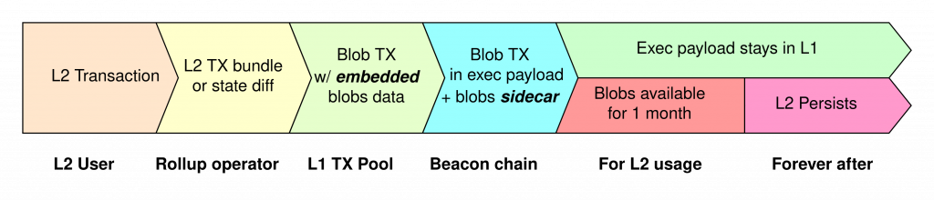 blob 的主要目的是显著降低数据可用性(DA)成本,特别是对于 Rollup 的L1发布。与传统方法不同,传统方法中所有 Rollup 数据都存储在以太坊的 calldata 空间中,blob 提供了一种高效和成本效益高的替代方案。由于共识层管理 blob 存储,blob 交易不会对验证者造成额外要求。此外,blob 数据会在建议的 30 至 60 天时间内自动删除,符合以太坊追求可扩展性而非无限期数据存储的目标。