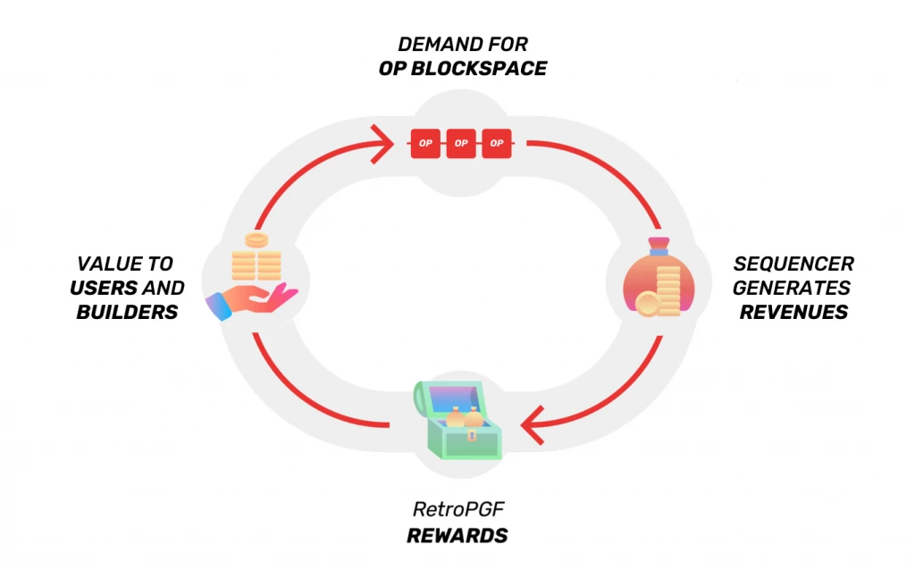 在金融市场中,公司的价值不仅仅与利润或股息挂钩。例如,成长型股票的估值取决于其长期增长潜力和再投资策略。投资 Rollup 治理代币也可以与投资非股息增长股票类似。 历史上,像亚马逊这样的公司选择不分发分红,而是将利润再投资于扩张和创新。这类公司的投资者并不一定寻求通过分红获得即时回报;相反,他们期望长期增长和价值升值。 以 Optimism 和$OP 代币为例,有明确的承诺将盈利再投资于生态系统增长,促进其原生 dApp 的需求增加、排序器收入和 RPGF 的良性循环。此外,随着诸如 Superchain 这样的计划即将到来,OP Stack 的带宽持续扩展,最终创造了一个由于网络效应而难以忽视的强大护城河。