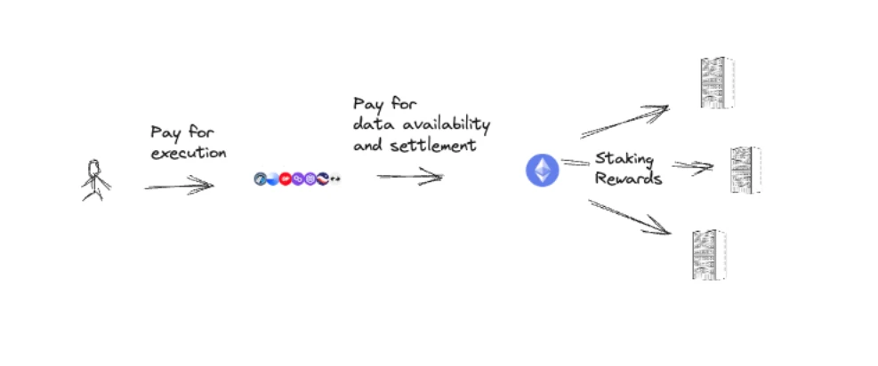 当我们检查当前 Rollup 的运作时,这种联系变得显而易见。他们以 ETH 的形式收取 gas 费,并且必须以 ETH 形式向以太坊支付数据可用性费用。本质上,这些 rollup 无法执行自己的货币政策;以太坊规定了他们必须向底层链支付多少钱。