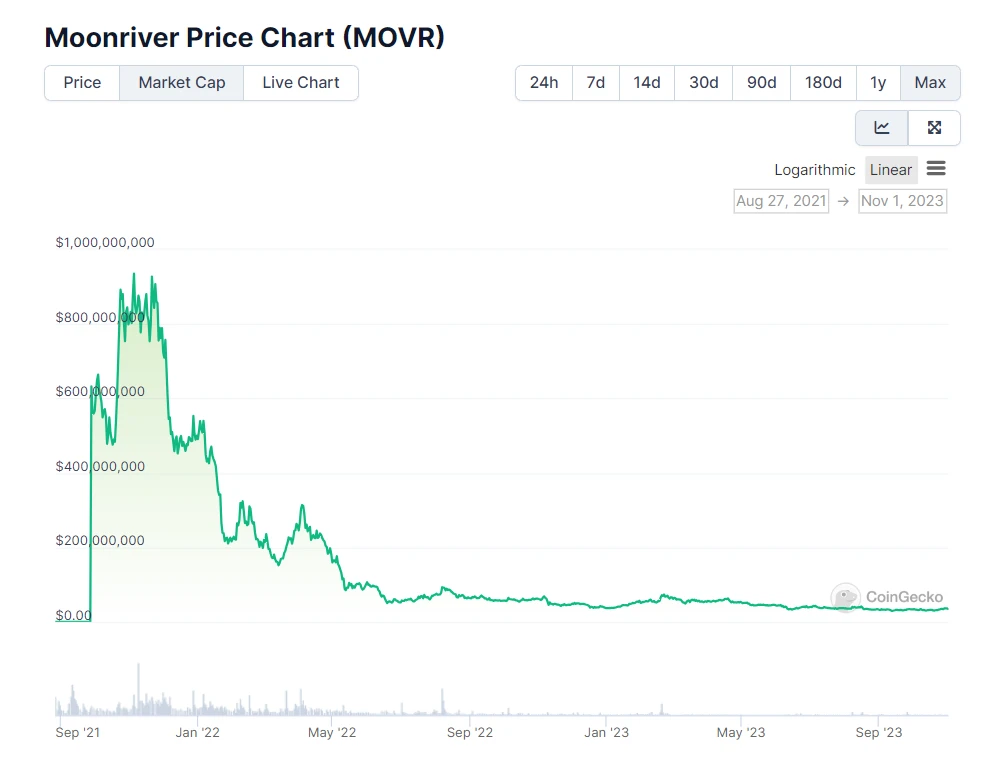 那些能够为生态系统带来独特价值的L1(如 Solana、Monad 等)将会存活下来。仅提供一个与 EVM 兼容且拥有更低 Gas 费用的链已不再足够。这现在看来显而易见,但在过去,有许多实例表明,拥有更低 Gas 成本的 EVM 兼容链达到了过高的估值。以 Moonriver 为例,它是 Kusama(波卡的金丝雀链)上的一个 EVM 兼容链,在 2021 年第四季度达到了 494 美元的历史最高点,现在交易价格为 4 美元。
