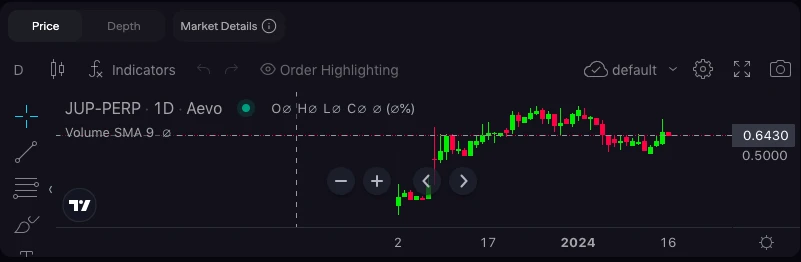 当前,Aevo 已上线了 JUP 的 pre-lanuch 合约交易,价格暂报 0.64 美元,过去一个月内最高曾冲至 0.85 美元,最低则曾跌至 0.48 美元。