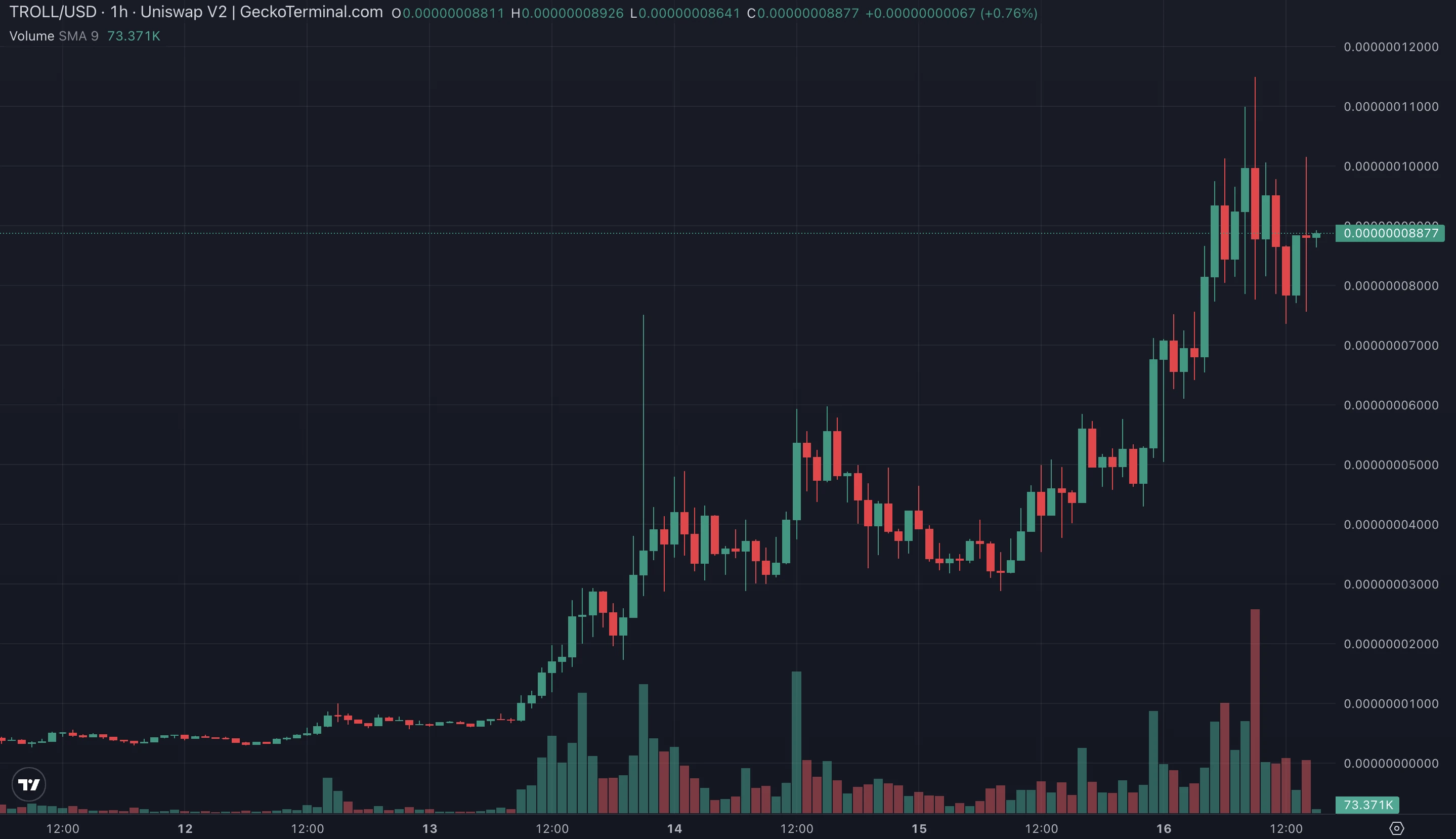 在短短一个周末之后,TROLL 价格已经上涨约 7 倍。
