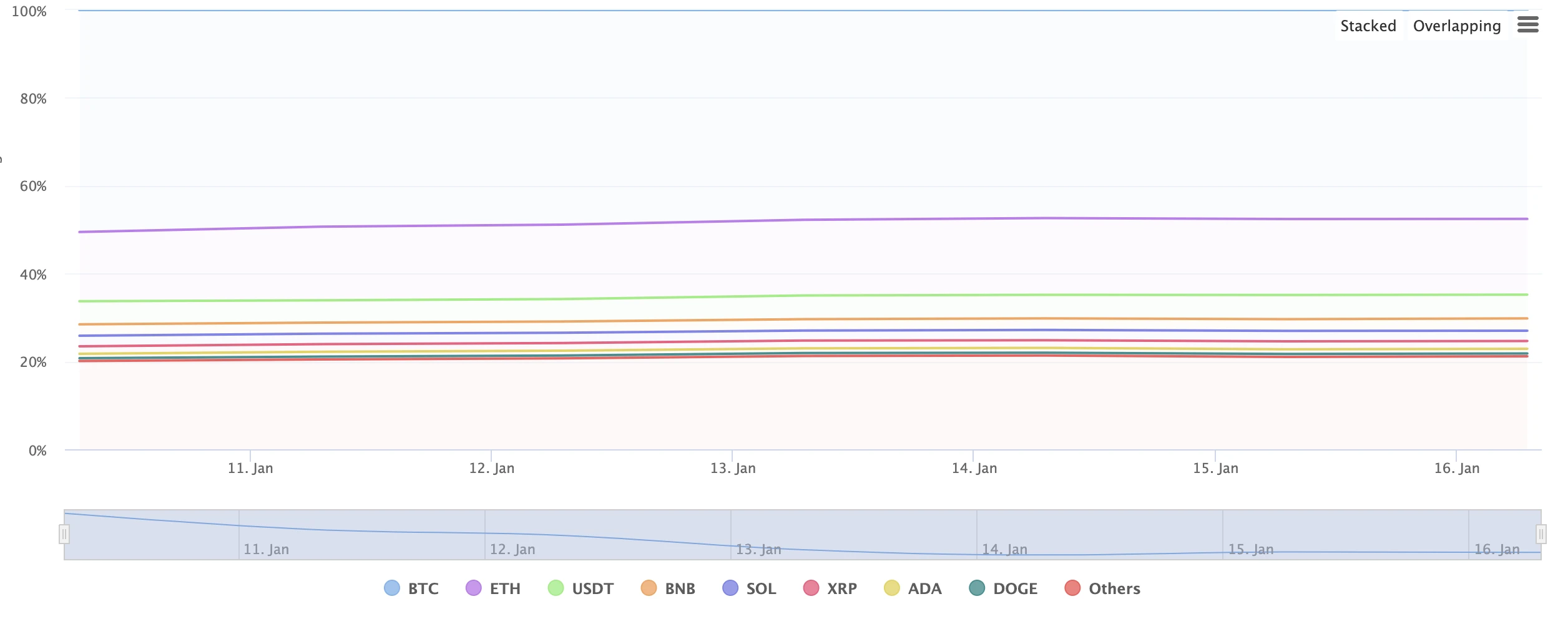 TradingView 数据显示,目前比特币的总加密市占率为 47.56% ,近一周以来正持续走低。