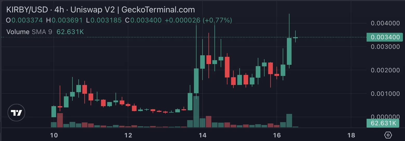 一时间,卡比币也成为了热门 meme。GeckoTerminal 数据显示,最大的一个卡比币已经在 6 天内完成了从 0 到市值 337 万美元的增长。