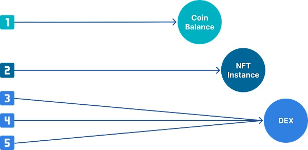 Shared object使用场景为DeFi、NFT交易市场、游戏等需要与用户频繁交互的应用 。对于包含shared object的交易,Sui 采用 Narwhal 和 Bullshark 协议进行排序和验证。Narwhal 是 Sui 的交易内存池,负责检查待处理的交易并生成一条有向无环图路径遍历这些交易。Bullshark 对某一特定的有向无环图遍历达成共识,从而确认这些交易的特定顺序。