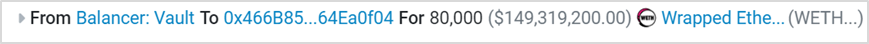 (1)攻击者( 0x6ec21d18 )创建 0x466B85B4 的合约,通过闪电贷向 [Balancer: Vault]借了 80, 000 枚 WETH。