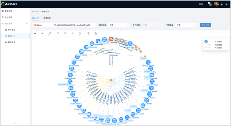 以涉款金额最高的两个地址进行链上地址追踪与反洗钱分析: