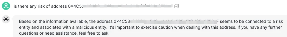 此处可以推断, Scopechat 的风险判别为识别和提示与恶意地址发生过交互的情况,但通常来讲交互若已发生,被盗事件应也已发生,意义不大。