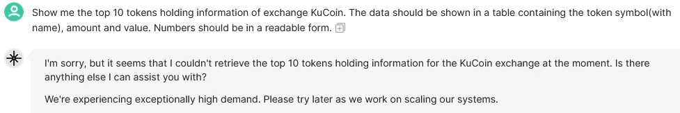 综上,Scopechat 在其本身业务链上数据追踪方面具备一定优势,用户能够通过 Scopechat 进行多维度的链上数据提取和转化,整体展现的数据也较为详实易用。性能较好,各类问题通常能在 30 秒内汇总给出答案。