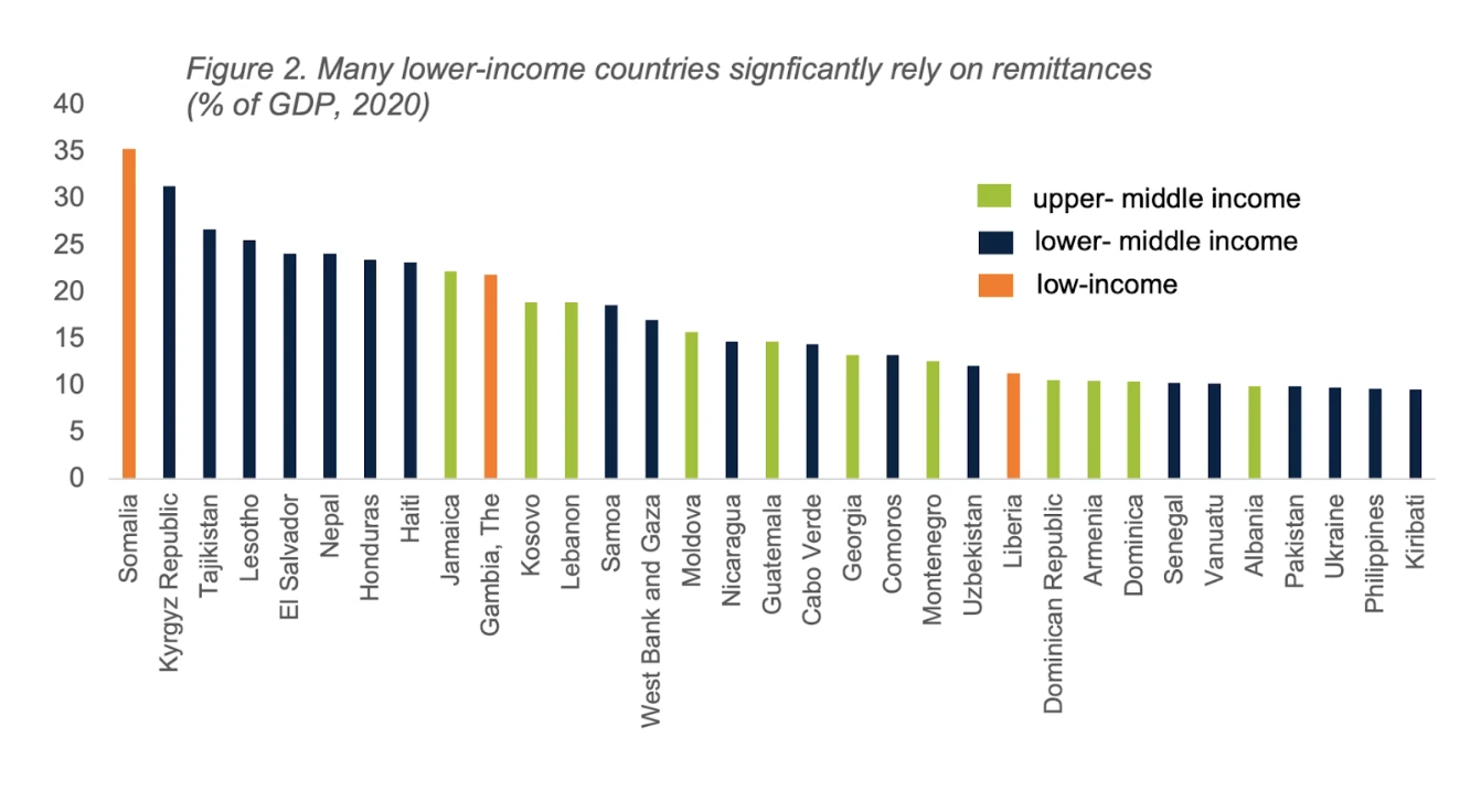 在一些低收入国家,汇款行业是 GDP 的主要驱动力之一,是许多经济体得以维持的方式: