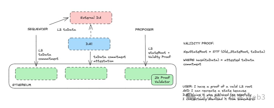 这种机制设计很简洁, 而且不需要依赖于 Celestia、Avail 或 EigenDA 等第三方 DA,只需要 Layer 2 项目方自己设置链下 DAC 节点即可, 堪称 Celestia 杀手。
