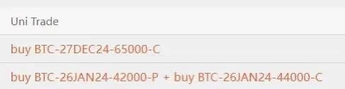2. 某老板花了 113 万美金,买了 1 月低 42000 的看跌和 44000 的看涨 我怎么觉得这是个止盈单,大概是在波动率高位的时候卖了,现在平仓买回来吧。