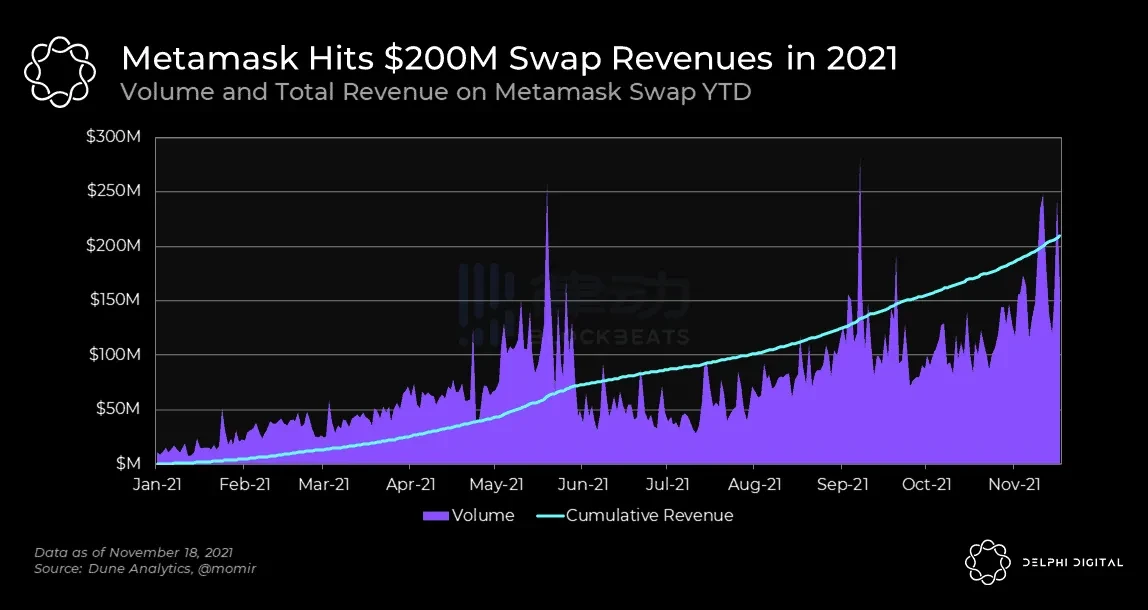 MetaMask 通过 Swap 功能在 2021 年达到了 2 亿美元的营收