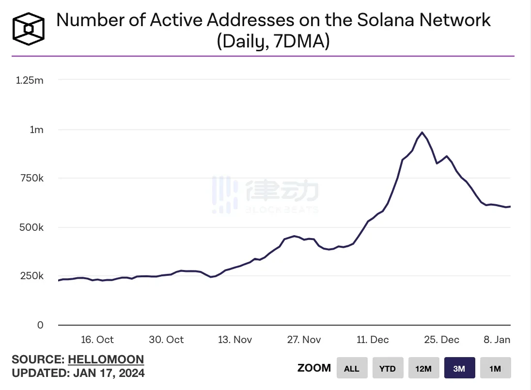 除了比特币生态崛起,还有拿了逆袭剧本的 Solana,SOL 是 2023 下半年币价拉升反弹的领头羊之一,截至 2023 年底,SOL 市值为 438 亿美元,环比增长 423% ,同比增长 1106% 。meme 币 BONK 和 JTO 空投打头阵,将 Solana 生态热度带出圈,随后迎来的 meme 季甚至让 Solana DEX 交易量一度超越以太坊,让 Solana 生态的基础设施项目获得了大量的收益,其中包括 DEX Raydium 以及钱包 Phantom。
