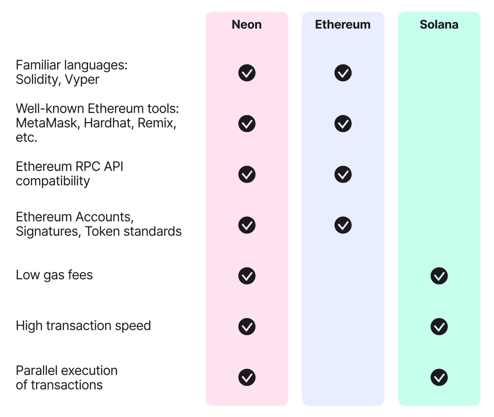 NEON代币 :这种实用代币有两个主要功能 - 支付gas费用和通过DAO参与治理。