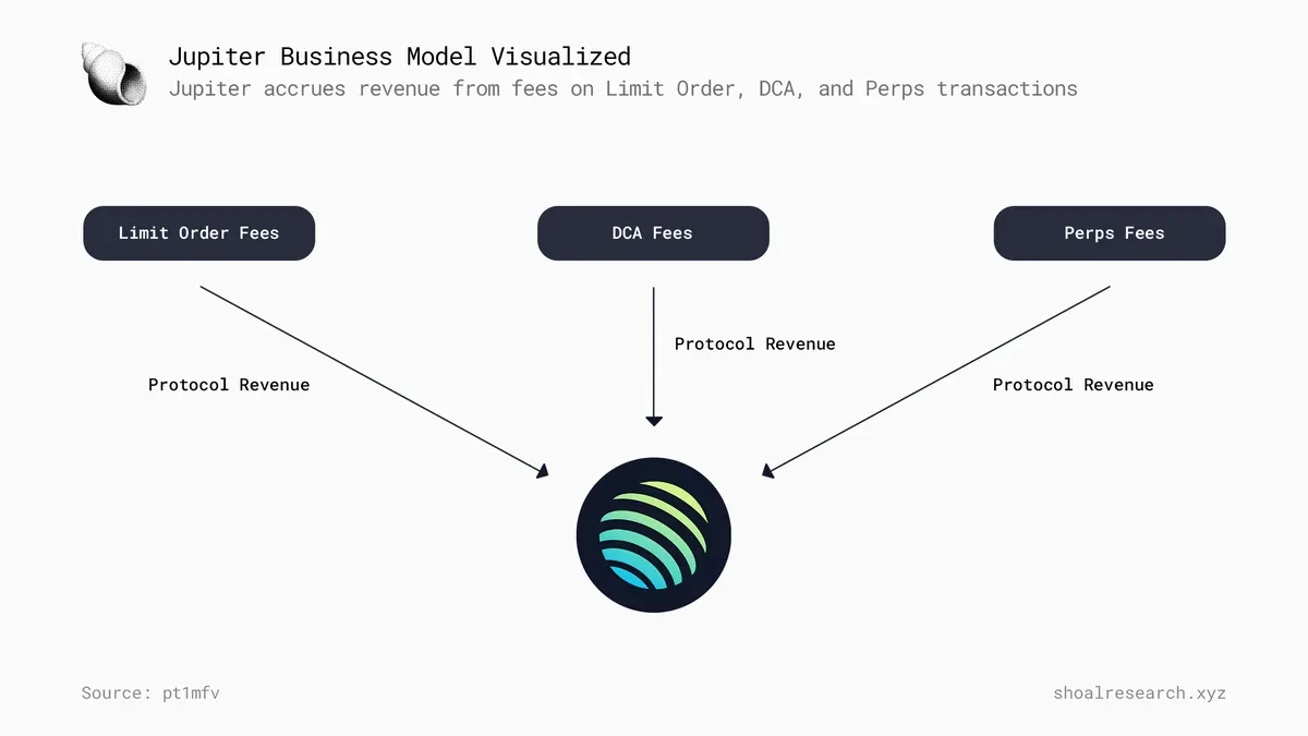 JUP 持有者应该是 Jupiter 收入流的主要受益者(限价单、DCA、Perps、Jupiter Start + Labs)。