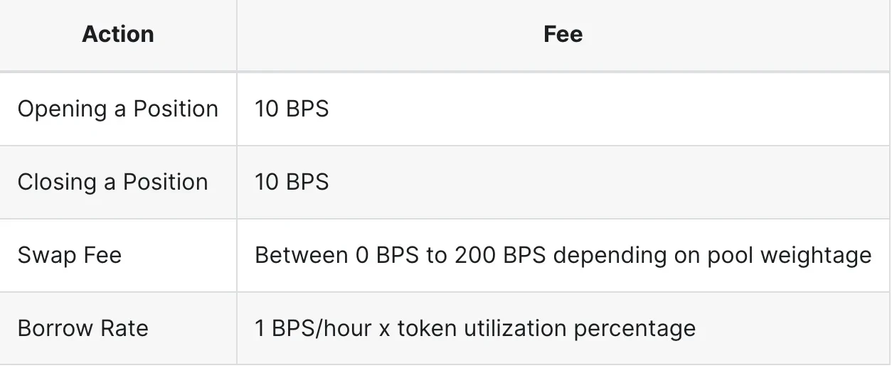 LP 也需要支付自己的一部分费用,用于开仓/平仓头寸以及在 JLP 池内进行不同资产的交换。