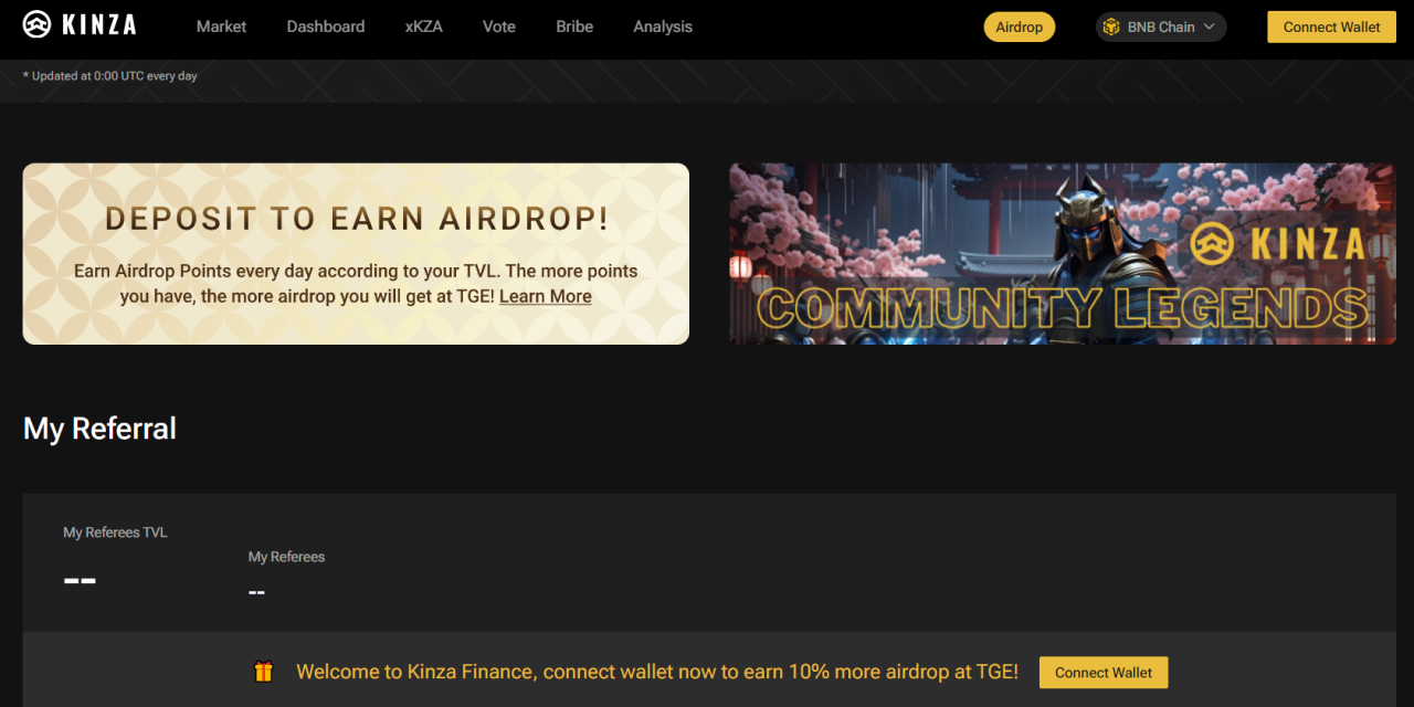 Kinza 是一个为 DeFi 生态系统构建的借贷协议,旨在连接流动性的需求和供应,以创建最佳的链上货币市场。它是 BNB 链上的协议, 2023 年 8 月获得 Binance Labs 的融资,根据该项目的代币经济学, 5% 用于空投。