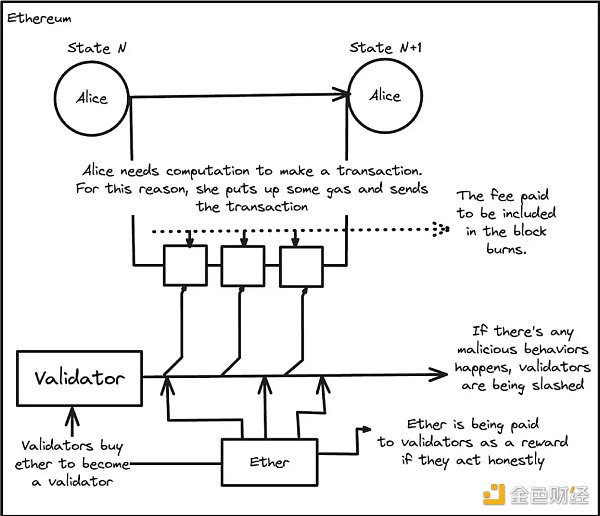 对于以太坊来说,这是一场不同的游戏。验证网络的参与者会预先收到一定数量的以太坊,如果他们诚实行事,就会获得以太坊奖励。与比特币不同,不良行为(注意:不良行为的类型非常不同,我选择此作为土耳其语中恶意行为的最合适翻译。如果造成混乱,我深表歉意)不仅会导致无法获得奖励,还会导致销毁比特币。以太坊被验证者锁定。