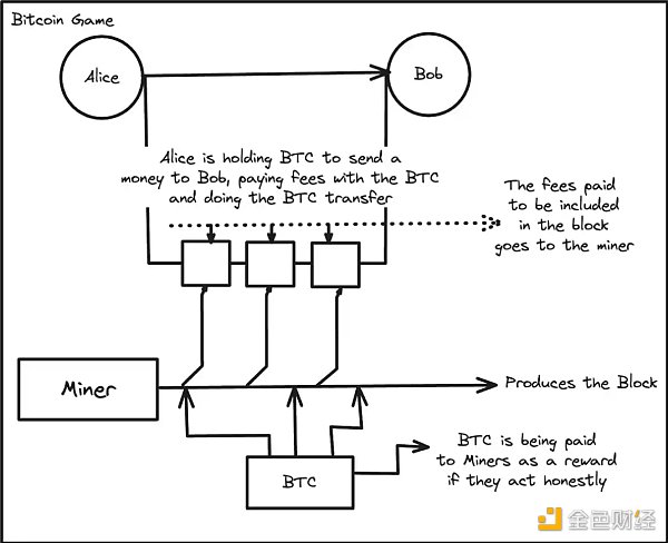 比特币创建了一个基础设施,将信任从中央机构或团体手中夺走,并将其交给数学和博弈论。简而言之,该基础设施的工作原理如下:Alice 想将 BTC(比特币的原生货币)发送给 Bob。她向网络发送一笔交易,其中包括 BTC 佣金。