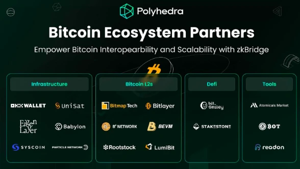 Polyhedra Network 已经与比特币生态系统内的关键建设者进行合作,其中涵盖了基础设施、钱包、比特币二层、DeFi 和工具。