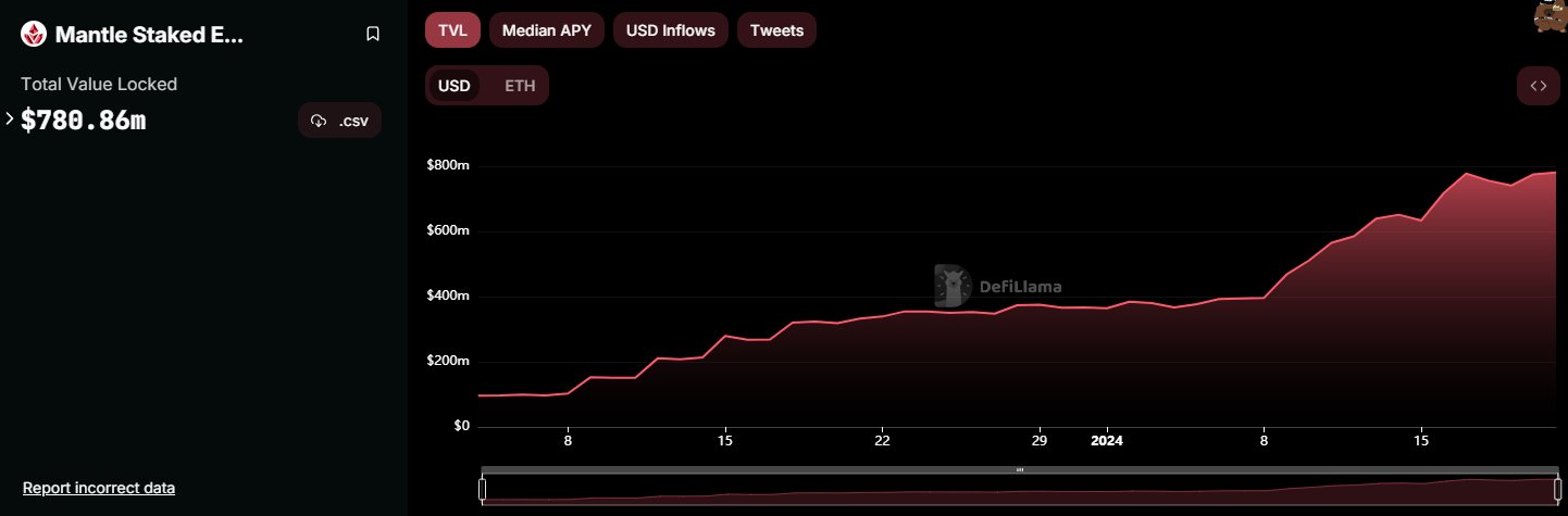 自去年 12 月初以来,这些协议已经增加了约 22 万枚 ETH,并且在 EigenDA 推出之前仍在持续增长。此外 Frax Finance 和 Mantle 的 ETH 质押量也或将不断增加。